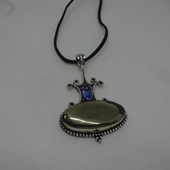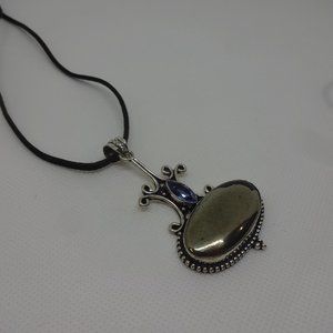 Gorgeous "APACHE PYRITE & AQUAMARINE" Handmade Sterling Pendant on a 18" Black Leather #384