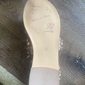 Never worn in box, gorgeous Alma en Pena sandals with slight heel. Dusty rose in color, please see photos. Get them for considerably less than purchased price. Zipper in back.