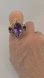 This is one special ring. The setting is solid sterling silver with platinum overlay and yellow gold framing. The large gemstone is amethyst, and the other stones are alexite. Alexite is a lab grown gemstone that changes color in certain lighting. It is named after the famous alexandrite. This will make anyone feel like a member of the royal family. Size 8. Hallmarked STS 925!