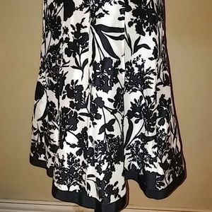 EUC! Beautiful Black and White floral print sleeveless dress! Dress has beautiful ribbon detail at waist and hemline. This dress is 100% Silk and fully lined. Beautiful to wear to work with a blazer and pumps or for any daytime event with flats or sandals! I got it for a wedding and never wore it.