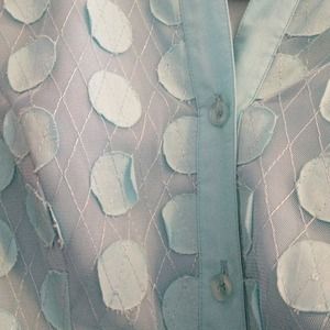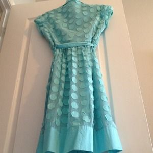 Worn once (to my bridal shower). Beautiful overlay detail. Collared with a fabric tie. Awesome color.