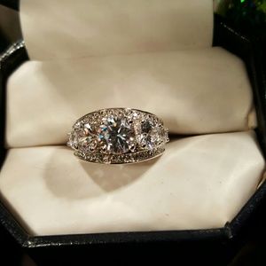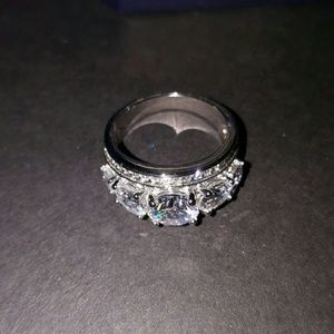 SILVER Plated triple band CZ ring with 3 Large Cz's encased in Two thin bands with small cz's. I couldn't do justice to the glean and shine. Beautiful! Sz 6