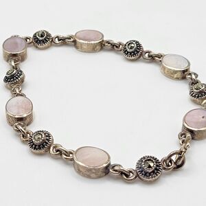 Gorgeous Artisan Hematite Abalone Mother of Pearl Sterling Silver Bracelet 8in | Materials: sterling silver, mother of pearl/ abalone, hematite | Length: 8in | Clasp: spring ring | Signed? 925 | Excellent vintage condition