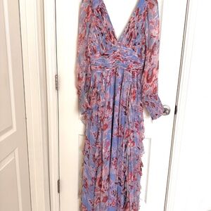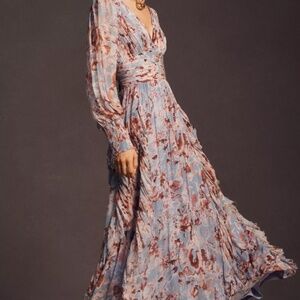 Gorgeous BHLDN V-Neck Long-Sleeve Printed Chiffon Gown 💕💕