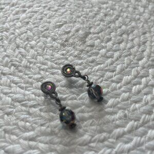 Gorgeous BLACK AURORA BOREALIS CRYSTAL Silver Dangle Earrings (7/8" Drop) #848D