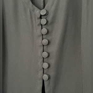 This maxi dress is crafted with languid swathes of black sheer panels which cascades down to an ankle-grazing length. This elegant piece is shaped with a v neckline that boasts Fabric covered buttons, offsetting the straight, column silhouette.