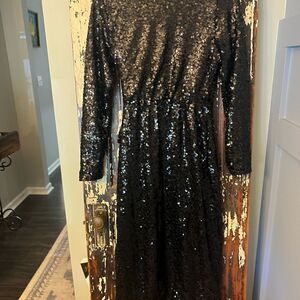 Gorgeous Black Tie Black sequined wrap dress H& M. Women’s size small. Elegant