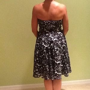This is a beautiful cocktail dress/Evening dress. Minimal wear!. Material: Shell: 100% cotton! Lining: 100% acetate. Knee length dress.