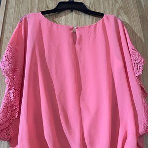 Never had a chance to wear. Coral colored. Interior liner with elastic waist and puffy sleeves
