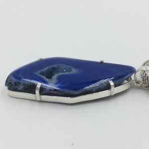 Gorgeous Blue AGATE SLICE Quartz Crystal GEODE Sterling Silver Set PENDANT, NEW