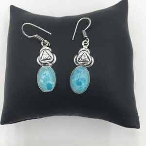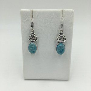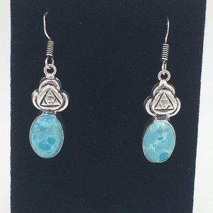 Gorgeous Blue Mosaic Jasper Cabochon 925 Sterling Silver Pierced Dangle EARRINGS - NEW!
