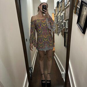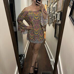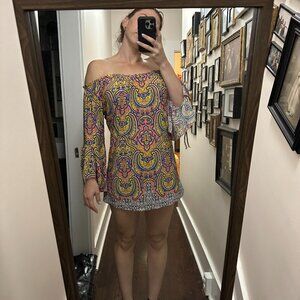 Gorgeous Boho Multicolor Off the Shoulder Mini Dress Small
