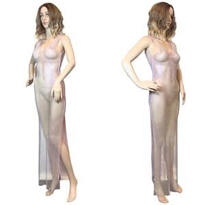 This Maxi Dress features gorgeous pink mesh with striking Aurora Borealis rhinestones. Crafted from breathable material, this cover up ensures a comfortable body hugging fit, perfect for summer!
