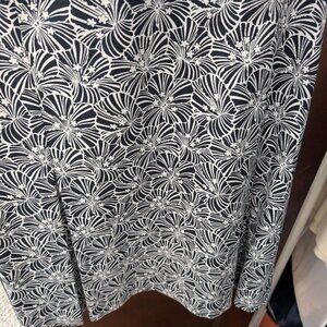 I am selling a gorgeous Brooks Brothers dress. It (sadly) no longer fits me. It is navy and white and is a thicker fabric. Suitable for business wear. the dress has two pleats in the skirt. Gives a beautify shape to the wearer.