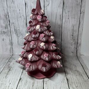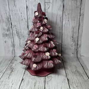 Gorgeous Burgundy Handmade Hand Crafted Christmas tree Accented with Pink Burgundy Roses 11”