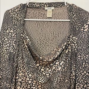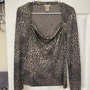 Gorgeous Cache Black And Gold Long Sleeve Cowl Neck Animal Print Blouse Size Small. Itβs from smoke and and pet free home. Great condition.