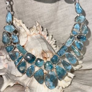 Gorgeous Caribbean Larimar encrusted double row Handcrafted Necklace