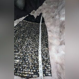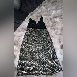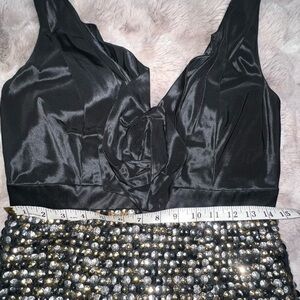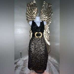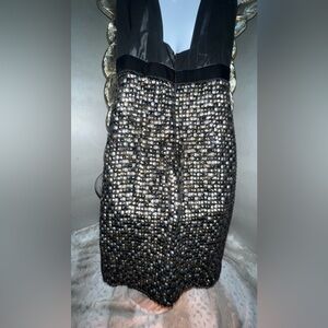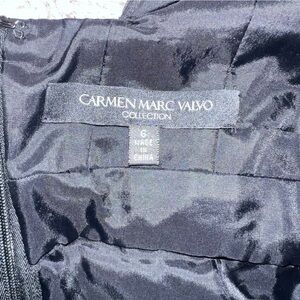 Gorgeous cocktail dress by Carmen Marc Valvo Studded Embellishments at bottom with a 100% Silk lining and a V neck top, very chic and elegant. A unique dress to own for a very special occasions or date night. In very good conditions. Belt not included.