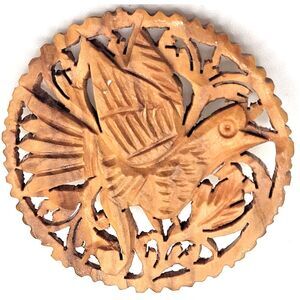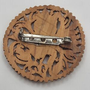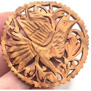 Gorgeous Carved Wood Brooch 1.75in