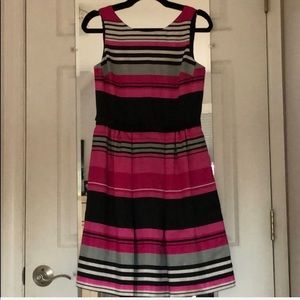 Beautiful pink, black, grey and white striped cocktail dress. Worn once (to a wedding).