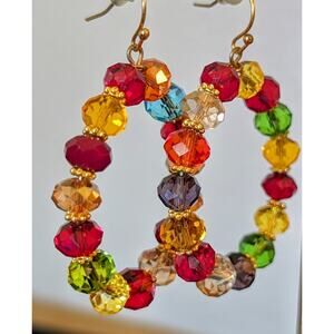 Gorgeous Colorful Glass Crystal Bead 1.75" Hoop Dangle Earrings. Hung from french wire. Every color of the rainbow is in these lovely earrings. Great for Spring and Summer wardrobe. Pre-owned, these earrings are in excellent condition.