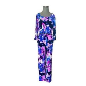 Discover the charm of this Gorgeous C&C Studio Jumpsuit, featuring a vibrant floral print in #RoyalBlue and #Pink. Crafted from 100% polyester, this piece combines style with comfort. Designed with a 3/4 sleeve and a #belted waist, it offers a flattering fit, while the #zipfront adds a touch of practicality. This jumpsuit fits size S, but can comfortably accommodate a size M. Measurements include approx. 21" from armpit to armpit and a waist of 31". Two roomy side pockets make it as functional as it is stylish.