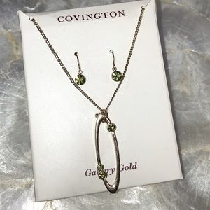 🆕 Gorgeous Covington Gallery Gold Tone Jewelry Set Green