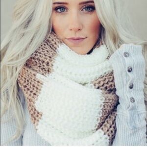 Gorgeous oversized chunky knit infinity scarf. 100% acrylic. So soft and not itchy. Best seller!