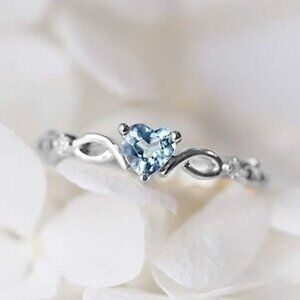 🌸Gorgeous Cute Heart Shaped 925 Silver Blue Diamond Ring for Women, F017