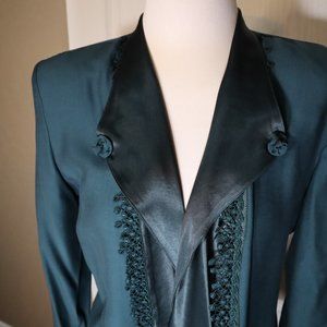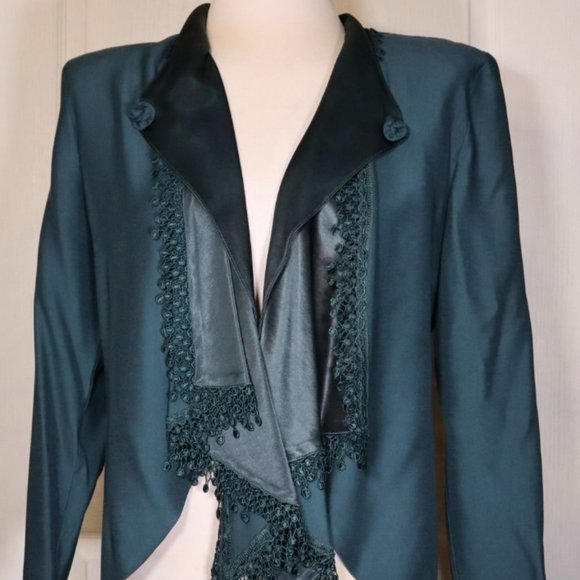 Gorgeous Dark Blue Green Jacket with Satin Fringe Detail