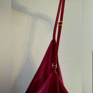 “Worn once. Red one available only. Gold hardware. From Ukrainian Etsy shop TheSerenityWear. Size: XL for hips 43”/108cm and over. This deep red shade is no longer available from the shop.