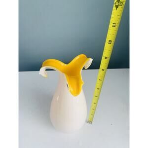 Gorgeous Design Cased Glass Vase White Yellow Petals Flower Floral Home Decor