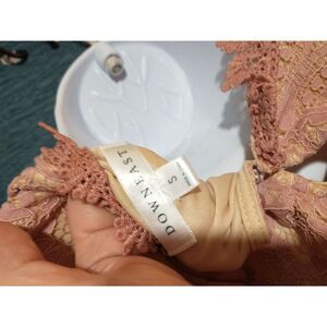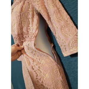 Gorgeous and classy, DownEast, lined pink lace, fitted dress size small. Zipper closure on the side and teardrop opening with button closure on the back at the neckline. In excellent condition and comes from a clean environment.