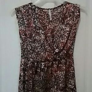 Sleeveless Silky Dress. Brown, tan, cream and copper/orange colors. Brand is Kiwi size Medium. Worn a few times but Excellent condition!! Hand wash & line dry