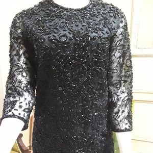 Gorgeous Vintage Elsie Tu Black Beaded Dress XS