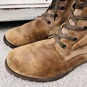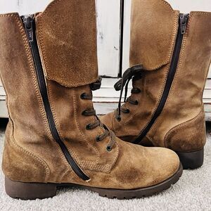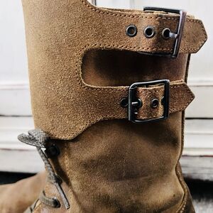 Gorgeous FLY LONDON Brown Suede Leather Double Buckle Two Tone Boots - Size 11