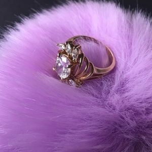 This ring has 14k HGE LIND JQA engraved on the inner side of the band. Costume gold - plated with zirconium stones. Vintage jewelry with a lot of compliments received.