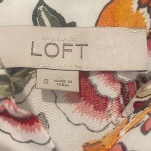 Absolutely beautiful floral dress by LOFT. Tie waist. Ruffle at shoulder. Excellent condition. Size Small.