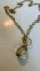 Friendly golden Snake wrapped around an elongated oval crystal globe, hangs on a long large link chain,