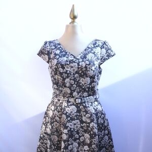 Gorgeous GAL MEETS GLAM Size 8 Elle Duchess Satin Cocktail Dress Floral Prints