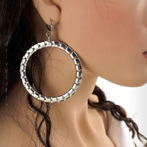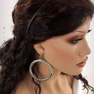 These trendy earrings look amazing! I only have the gold tone. Textured. Snap closure, which is awesome-- no lost earring!!!! Length is approximately 3.25, width approximately 2.5.