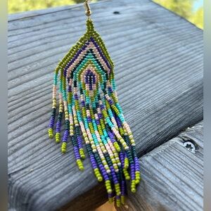 Gorgeous 💋Gold Beaded tassel boho western tribal earrings jewelry purple…New