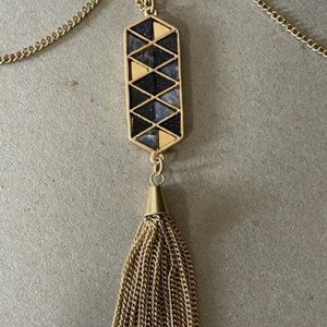 Gorgeous Gold Electroplated 60's or 70's Tassel Pendant with Inlaid Stones on a 30" Gold Chain