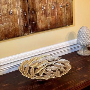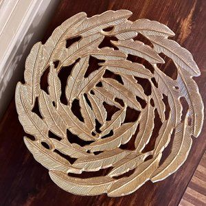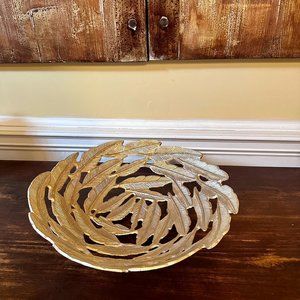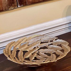 Gorgeous Gold Metal Feather Motif Centerpiece-Bowl