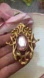Gorgeous Gold Ornate Brooch with Large Pink Stone, Vintage