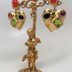 Gorgeous Gold Plated Assorted Cabochons Heart Dangle Clip on Earrings