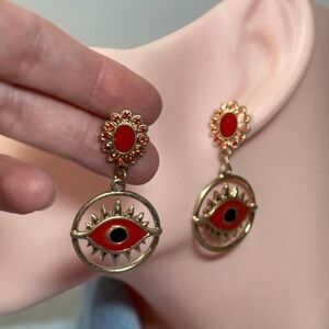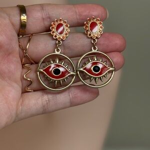 Gorgeous Gold and Coral Red Eye Earrings 💫