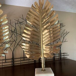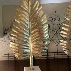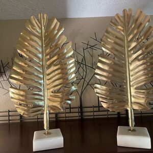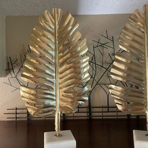 Gorgeous Gold Leaf Metal Decorative Set Leaves Marble Base 18 inch Statues x 2