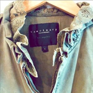 Pre-owned Gorgeous Sanctuary Green Jacket. Soft with lace trim. Bottom left hand button front pocket missing. Great with Jeans.. ❤️