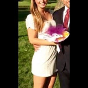 Cream Lace dress with sweetheart neckline rouged sleeves and V-back with back zipper. Priced to sell. Accepting offers!